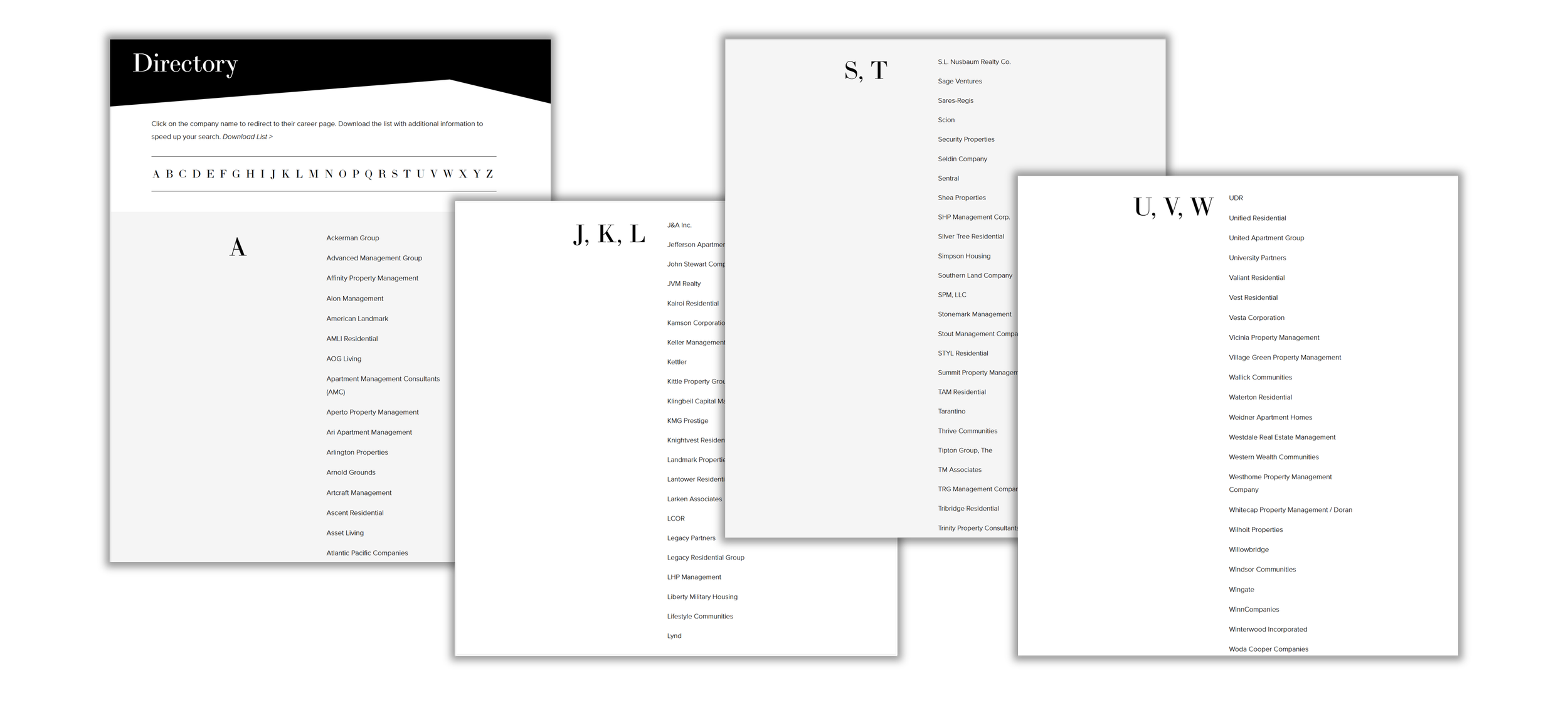 Searching directly on company career pages provides information about their culture, history, and capabilities. This may also include roles not posted on paid recruiting websites. Visit our directory of over 250 property management companies in the United States with links to company career pages.